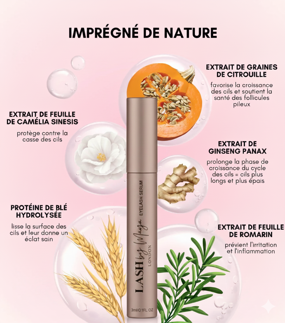 Le sérum pour cils de Lash by Maya est méticuleusement conçu avec des ingrédients naturels pour nourrir vos cils pour une croissance optimale.